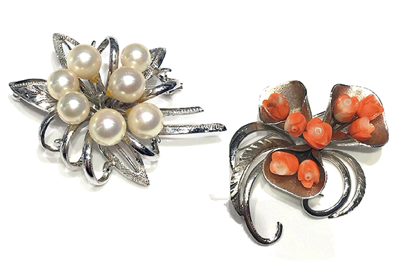 パールブローチをピアスにリフォーム