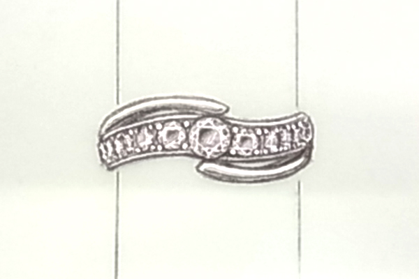 持っていた指輪のサイズが合わなくなって、悩んでいました。ネックレスにしようかとも思いましたが、素敵なデザイン画を描いていただき、指輪でリフォームすることを決めました。