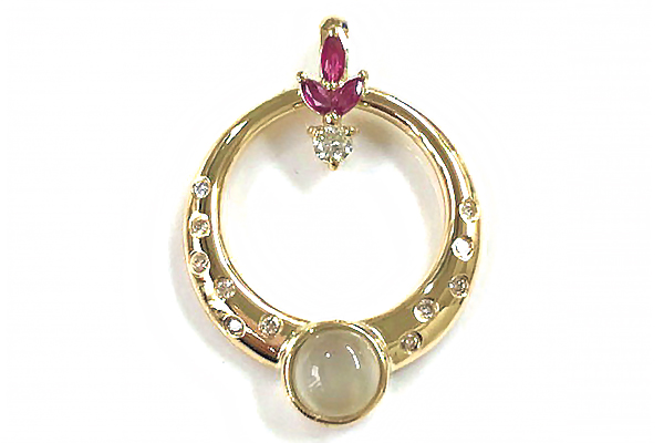 元々サイズの合わなくなった指輪がいくつかあり、スタッフさんの提案でペンダントにリフォームしました。私の誕生石もはいっているデザインなので、還暦のお祝いとして。