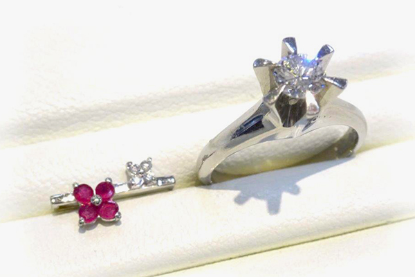 銀婚式記念に婚約指輪をネックレスにリフォーム